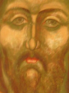 Fresco of Jesus Christ Pantocrator [in process – detail] painted by Marchela Dimitrova in domе of St George church in Assenovgrad, Plovdiv region, Bulgaria